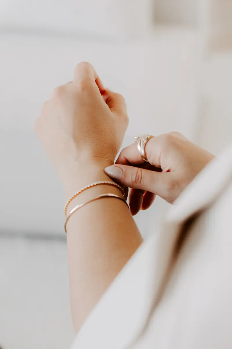 Ez a finom láncos karkötő tökéletes választás a visszafogott eleganciát kedvelők számára. Könnyű és kényelmes viselet, amely jól kombinálható más karkötőkkel is.